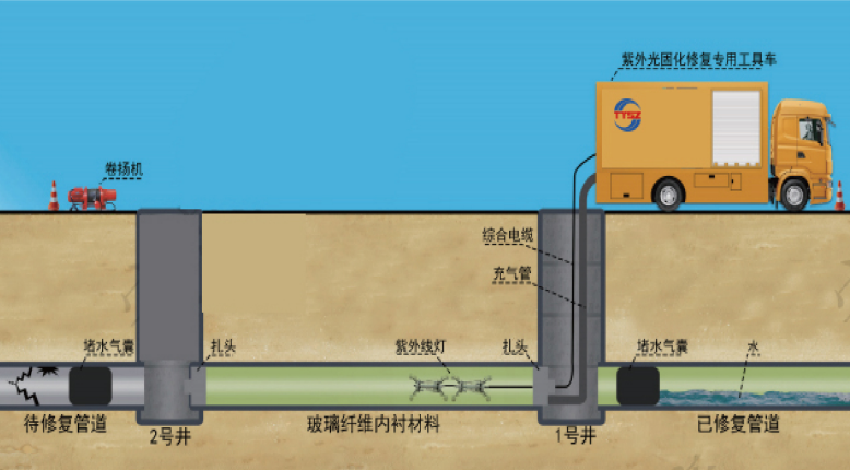 擁有紫外光固化修復(fù)技術(shù),真正100%非開(kāi)挖內(nèi)襯修復(fù),對(duì)交通影響極小;固化全程CCTV監(jiān)控,可控性好,拉入到固化只需3-4小時(shí)即可完成。