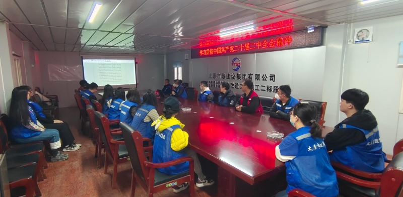 一公司黨支部在興華街周邊排水系統(tǒng)及道路園林景觀提標改造工程施工二標段項目部會議室召開“黨的二十屆二中全會精神”專題學習會,引導黨員干部深刻領會黨的二十大以來黨和國家事業(yè)展現的新氣象、取得的新成效,同時結合本職工作,立足崗位實際,以實際行動助推企業(yè)發(fā)展。二公司以集中學習和黨員自學的形式,組織黨員干部學習黨的二十屆二中全會精神及習近平總書記圍繞“奮斗”作出的一系列重要論述,激勵廣大黨員干部以永不懈怠的精神和一往無前的姿態(tài),向著宏偉目標和美好愿景奮勇前進,奮楫篤行。三公司在科室和項目部分設第一季第九期職工學堂,傳達學習黨的二十屆二中全會精神。大家結合工作實際,就“怎么學”和“如何用”的問題進行了學習交流,隨后撰寫了學習筆記,進一步細化、實化各項目標任務。四公司黨支部組織全體黨員認真學習領會黨的二十屆二中全會精神,進一步深刻領悟“兩個確立”的決定性意義和做到“兩個維護”的重要作用,大家一致表示將始終沿著習近平總書記指引的方向勇毅前行,全力以赴干事業(yè)、凝心聚力促發(fā)展。八公司以線上形式組織全體黨員學習黨的二十屆二中全會精神,大家紛紛表示要在全面學習、全面把握、全面落實上作表率,切實把黨的二十大精神落實到位。