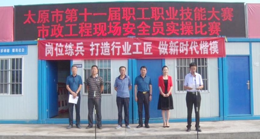 8月10日,由太原市總工會、太原市人社局、太原市經(jīng)信委、太原市科技局聯(lián)合主辦,太原市政建設(shè)集團有限公司承辦的太原市第十一屆職工職業(yè)技能大賽市政工程現(xiàn)場安全員實際操作比賽,在太原市政集團康樂街泵站項目部隆重舉行。太原市總工會經(jīng)濟技術(shù)部部長梁家齊,太原市職工技術(shù)交流站站長周彬,太原市住建委安全處處長李效忠,宣傳部副部長楊紅迎,太原市政集團領(lǐng)導(dǎo)郝東輝、馮忠出席了開幕式。開幕式由黨委委員、監(jiān)事會主席、工會主席馮忠主持。