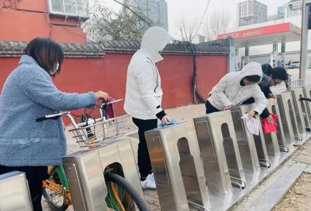 活動(dòng)中,志愿者們對太原市第二十中學(xué)校門前的公交自行車停放點(diǎn)進(jìn)行了擦拭,并將車輛擺放整齊,以實(shí)際行動(dòng)為美化城市貢獻(xiàn)力量。