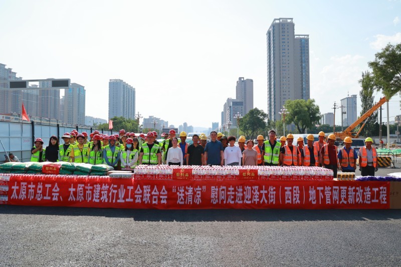 8月14日,太原市建筑行業(yè)工會聯(lián)合會“送清涼”慰問活動走進太原市政集團承建的迎澤大街(西段)地下管網(wǎng)更新改造工程項目現(xiàn)場。