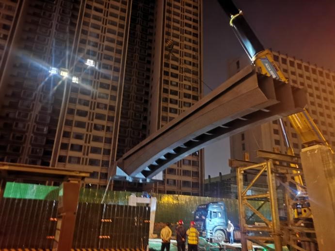 十四項目部承建的文興路匯豐南街人行天橋工期緊、任務(wù)重,項目部科學(xué)組織施工,合理安排工期,于9月16日晚完成鋼箱梁主體吊裝,目前正在進行橋面鋪裝作業(yè)。施工中,為保障工程總體進度及減小周邊交通影響,項目部決定箱梁運輸及吊裝施工均在夜間實施,并只在主橋鋼箱梁吊裝時全部封閉機動車道。吊裝作業(yè)時,安排專人統(tǒng)一指揮吊裝作業(yè),嚴(yán)格要求吊裝操作人員掌握安全技術(shù)操作規(guī)程及遵守“十不吊”原則,全力保障箱梁吊裝施工安全順利推進。同時,由于濱河?xùn)|路翠鑫路天橋所處地段原因,項目部在前期樁頭施工中,采用鋼板樁支護的方式有效解決現(xiàn)場沙土質(zhì)容易產(chǎn)生塌方的情況,為實現(xiàn)節(jié)點目標(biāo)打下堅實基礎(chǔ),該天橋正在進行鋼箱梁焊接施工。