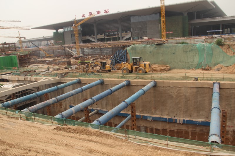 太原南站東廣場配套路網(wǎng)工程位于太原南站東側(cè),西起太原火車南站東出口,東至太行路,南至車站南街以南200米,北至南中環(huán)街,共包括10條市政道路、五條高架匝道引橋及所屬沿線的照明、管線等配套設(shè)施,同時(shí)外加2條貴賓小路。其中,北營北路包含地下通道及地面道路兩部分,地下通道全長1124米。該工程作為省級重點(diǎn)工程項(xiàng)目,受到了社會(huì)各界的重點(diǎn)關(guān)注和上級領(lǐng)導(dǎo)的高度重視,于2017年4月開工建設(shè),由八公司負(fù)責(zé)承建。施工中的重難點(diǎn)在于北營北路地下通道最深處達(dá)21米的深基坑施工,項(xiàng)目部采用混凝土灌注樁加內(nèi)支撐的模式,第一 道內(nèi)支撐為混凝土支撐,其余為多道鋼支撐,保證基坑壁穩(wěn)定性。地下通道施工時(shí),該通道頂板為折線拱形頂板,澆筑難度較大,項(xiàng)目部組織技術(shù)人員根據(jù)工程特點(diǎn),研究出一種全新的支模方法,利用插模板的方式進(jìn)行分段澆筑,在確保工程質(zhì)量的同時(shí),保證施工進(jìn)度。同時(shí),由于該工程情況復(fù)雜,項(xiàng)目部技術(shù)人員從“細(xì)節(jié)”入手,及時(shí)發(fā)現(xiàn)問題,并反復(fù)溝通協(xié)調(diào),提出了合理化建議,確保了工程有序推進(jìn)。在2019年的施工過程中,集團(tuán)公司組織五家施工單位,60多臺施工機(jī)械、130多名施工人員,經(jīng)過21天的奮戰(zhàn),協(xié)作完成10條道路從路基、水穩(wěn)到瀝青攤鋪的施工任務(wù),其中瀝青攤鋪面積達(dá)到7萬平方米。全體參建人員在太原城市建設(shè)的“戰(zhàn)場”上,傾情演繹著市政鐵軍的“速度與激情”,太原南站以嶄新的面貌迎接“二青會(huì)”的八方來客。