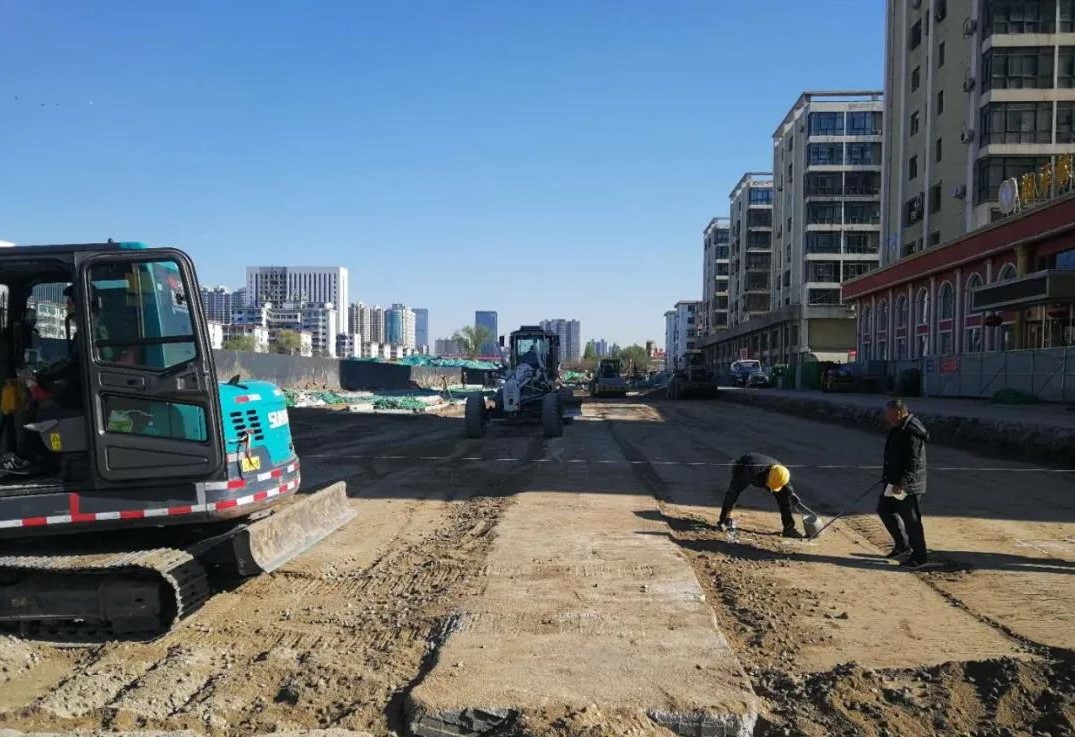 四公司軍民路(學(xué)府街——晉陽街)道路改造工程中許坦西街至師范街段正在進(jìn)行底基層水穩(wěn)鋪設(shè)