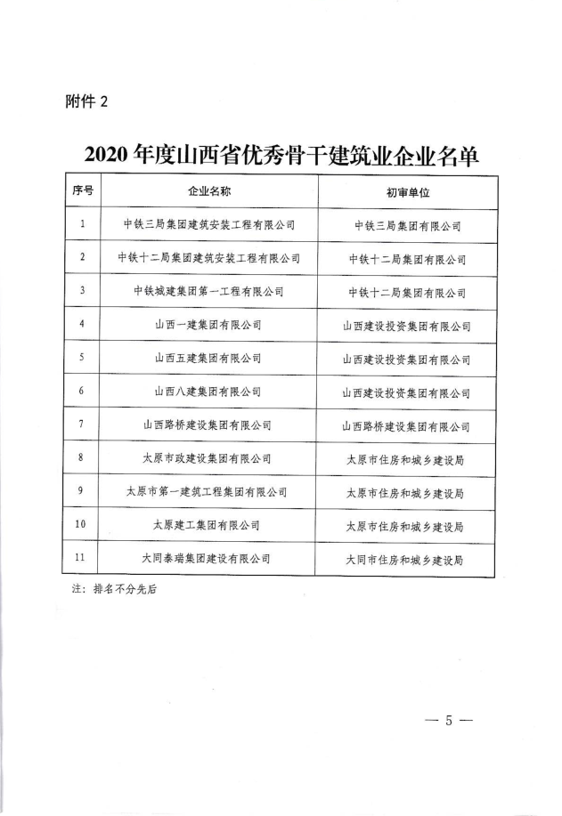 近日,山西省住房和城鄉(xiāng)建設廳發(fā)布《關于認定2020年度山西省骨干、優(yōu)秀骨干和10強骨干建筑業(yè)企業(yè)的決定》,集團公司再次被認定為“山西省優(yōu)秀骨干建筑業(yè)企業(yè)”。