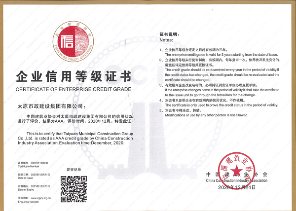 2020年12月24日,集團公司順利通過中國建筑業(yè)協(xié)會信用企業(yè)AAA級復(fù)評,證書有效期延至2023年12月23日。