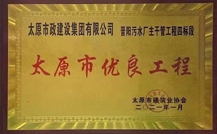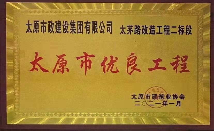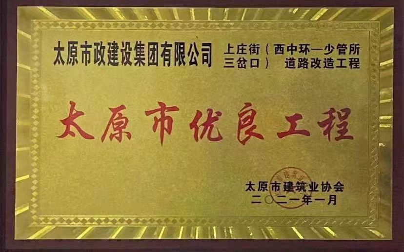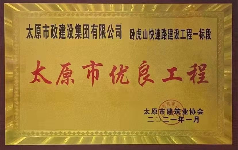 2021年1月13日,集團公司承建的晉陽污水廠主干管工程四標(biāo)段、太茅路改造工程二標(biāo)段、臥虎山快速路建設(shè)工程一標(biāo)段、上莊街(西中環(huán)——少管所三岔口)道路改造工程被太原市建筑業(yè)協(xié)會評為2020年“太原市優(yōu)良工程”,工程項目經(jīng)理郝東輝、高鴻、李瑞金被評為“2020年度太原市工程建設(shè)優(yōu)秀項目經(jīng)理”。