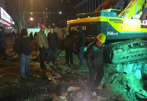 26日晚9點(diǎn)50分,經(jīng)過(guò)百余名搶修人員的共同努力,供水管道搶修順利完成,并對(duì)開(kāi)挖路面進(jìn)行了回填施工。