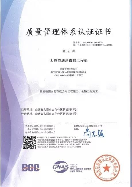 本次認(rèn)證審核工作得到了審核組的充分肯定,進(jìn)一步促進(jìn)了通途市政工程處生產(chǎn)經(jīng)營管理的規(guī)范化、科學(xué)化。