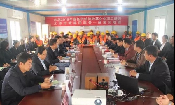 10月23日,太原市總工會服務(wù)供給側(cè)改革企業(yè)職工培訓(xùn)定點單位太原市政集團(tuán)服務(wù)一線巡回培訓(xùn)開班儀式在四公司水馬路工地舉行。市總工會黨組成員、副主席汪倫,太原工會干部學(xué)校校長張全民,干校工會主席左蓮梅,太原市政集團(tuán)黨委委員、董事、副總經(jīng)理溫慧武,黨委委員、監(jiān)事會主席、工會主席馮忠,總工程師高鴻出席。
