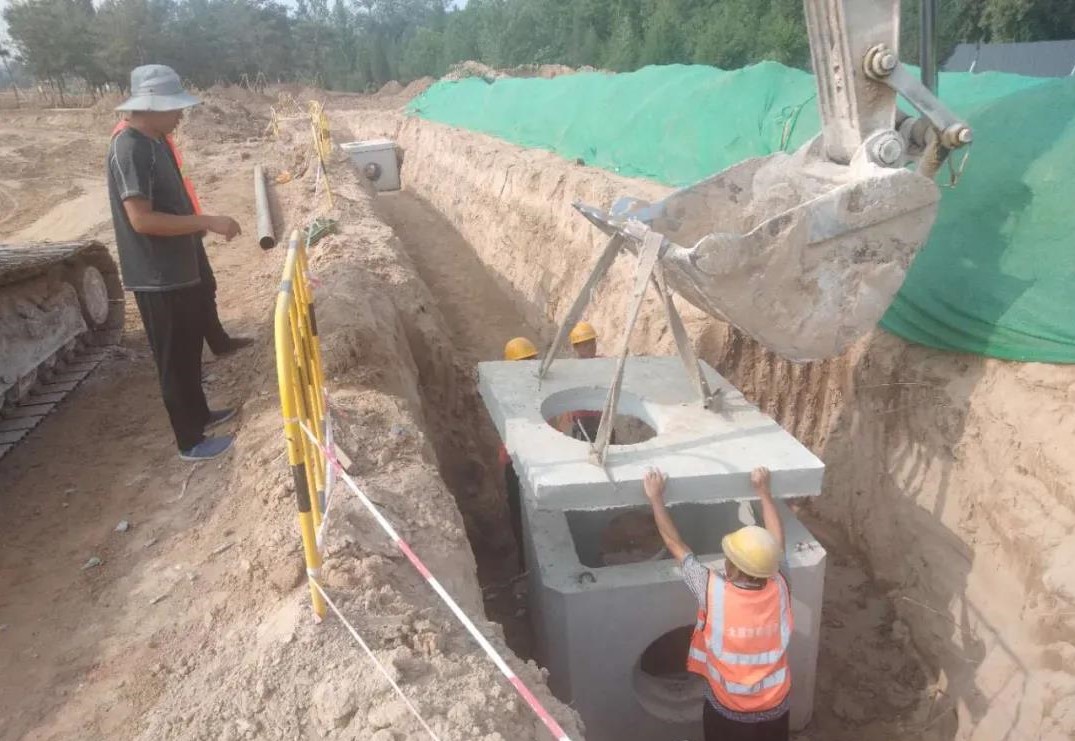 該工程包括道路工程、給排水工程、供熱工程、電氣及弱電工程等,涉及雨水、污水、給水等九種管線施工。施工前,項(xiàng)目部針對工程管線多,且各類管線的埋深及位置不同,因地制宜、提前規(guī)劃,安排施工人員第一時(shí)間摸清管線施工位置,做好分區(qū)域、分層次施工安排。施工中,項(xiàng)目部針對工程點(diǎn)多面廣的情況,將整個(gè)工地分為東西兩個(gè)工區(qū),安排四個(gè)施工隊(duì)分別負(fù)責(zé)各類管線施工,交叉利用機(jī)械進(jìn)行倒替作業(yè),為后續(xù)施工贏得更多時(shí)間。同時(shí),由于雙塔景區(qū)項(xiàng)目分九個(gè)標(biāo)段,周邊施工的兄弟單位眾多,管線及道路施工都與園林、古建等施工單位存在交叉施工的情況。項(xiàng)目部“兩手抓、雙推進(jìn)”,一邊組織相關(guān)人員進(jìn)行現(xiàn)場勘察,優(yōu)化施工方案;一邊積極與業(yè)主及周邊施工單位進(jìn)行溝通協(xié)調(diào),合理確定機(jī)械、材料等進(jìn)場時(shí)間,采取錯(cuò)峰施工,最大化減小交叉施工影響,加快推動(dòng)工程進(jìn)展。